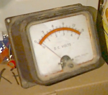 Old meter, reads 0-5 and 0-15VDC, about 4"x5", probably from a car battery tester. not tested. $5