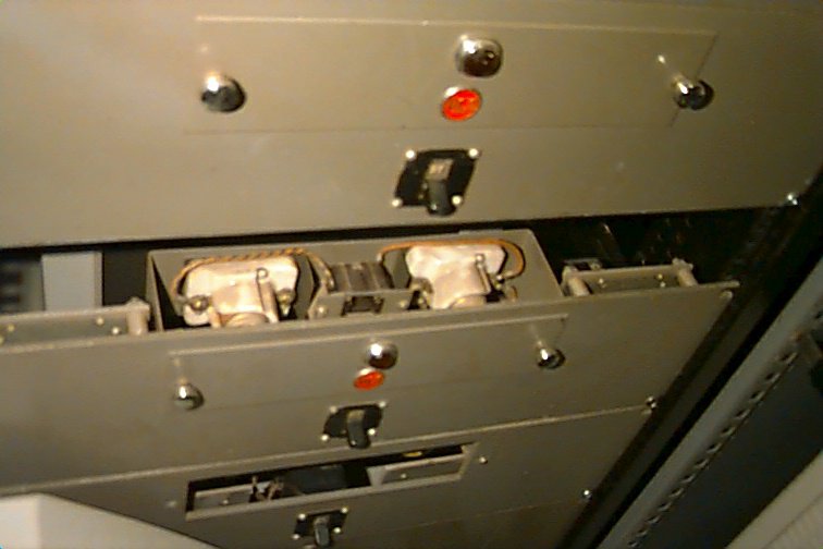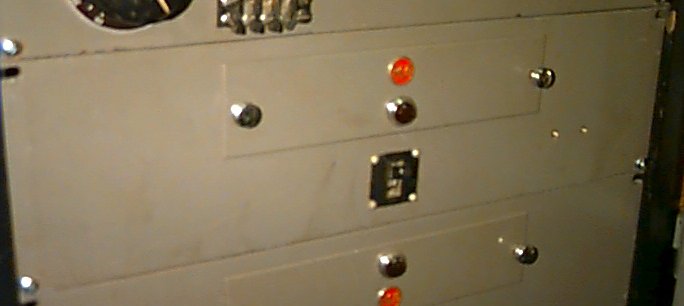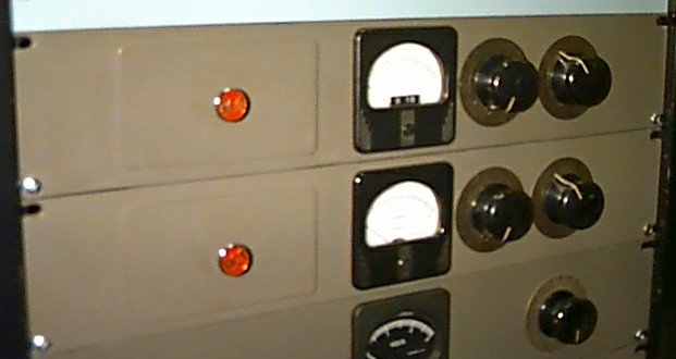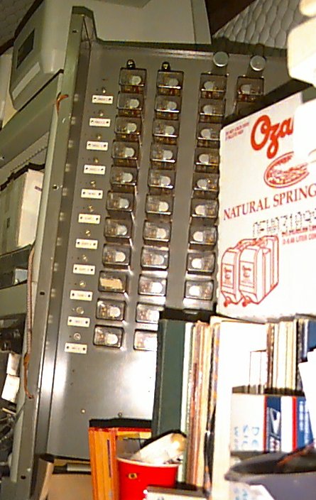 Yes, it's hard to see because things are in front of it, but this recessed rackmount panel is the heart of the RCA audio switcher as used by TV stations in the '40's and '50's. 44 relays and two MI-11712 transformers (20K CT to 600/150 CT) as well as individual level set controls (screwdriver adjust pots) for each source and full wiring and terminal blocks on rear make this attractive and clean unit a proud addition to any authentic tube type studio. $150